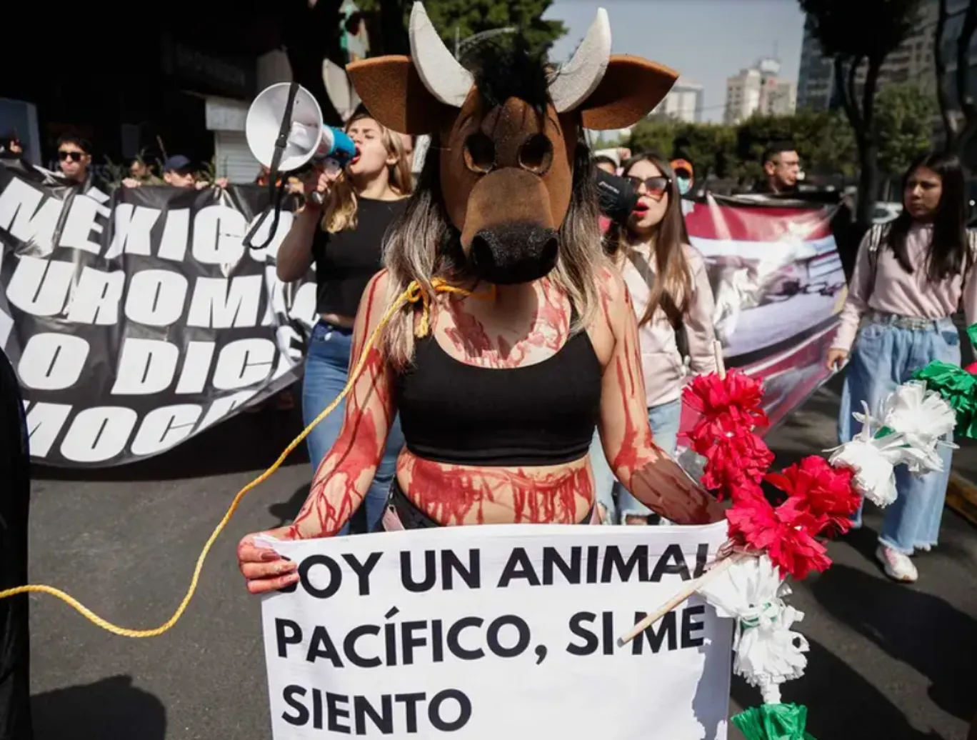 Activistas protestaban este domingo contra el reinicio de las corridas de toros en Ciudad de México, luego de que la Suprema Corte revocara una suspensión que impedía realizarlas.