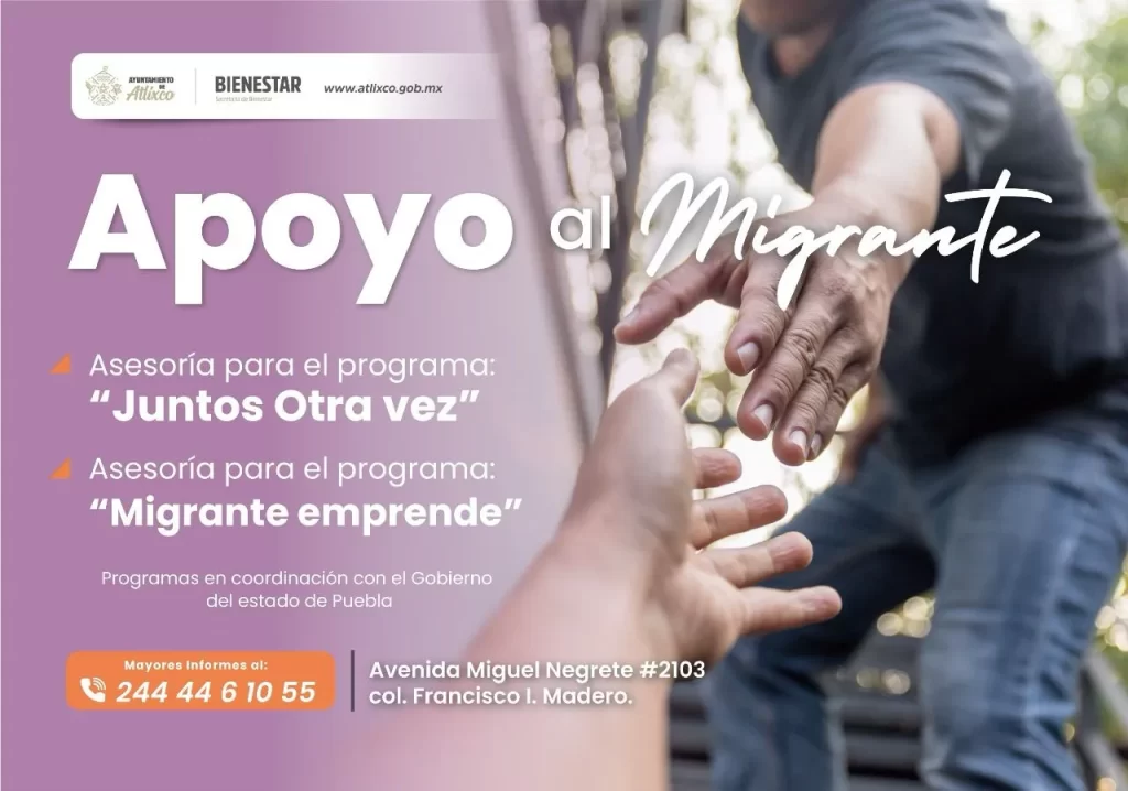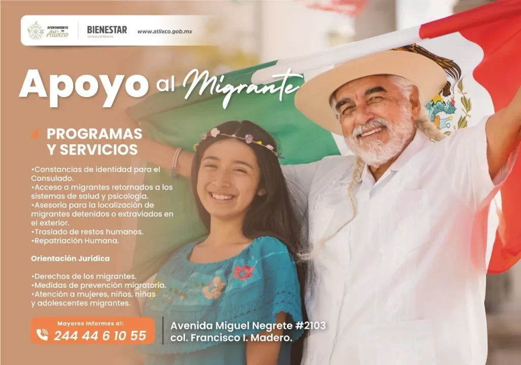 Con el firme compromiso de respaldar a la comunidad migrante y proteger el bienestar de sus familias, el Ayuntamiento de Atlixco, encabezado por la presidenta municipal Ariadna Ayala, refuerza los lazos de unión brindando servicios gratuitos de orientación, gestión y asistencia migratoria.