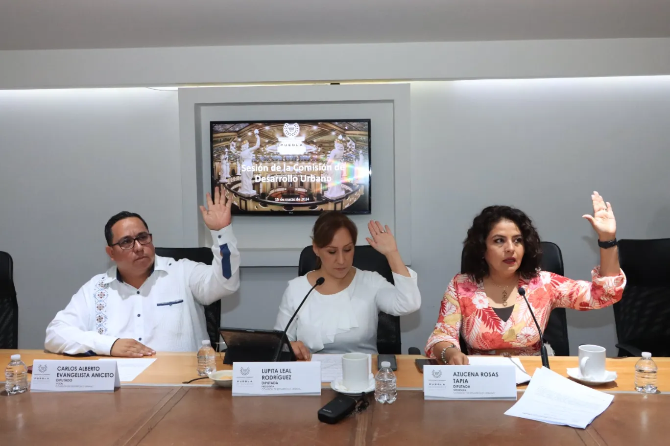 En sesión de la Comisión de Desarrollo Urbano de la LXI Legislatura se aprobó el proyecto de dictamen de acuerdo para exhortar a la Secretaría de Medio Ambiente, Desarrollo Sustentable y Ordenamiento Territorial del Gobierno del Estado de Puebla y a los 217 Ayuntamientos de la entidad, a que implementen acciones de prevención, vigilancia y control de los procesos de fundación de asentamientos humanos irregulares.