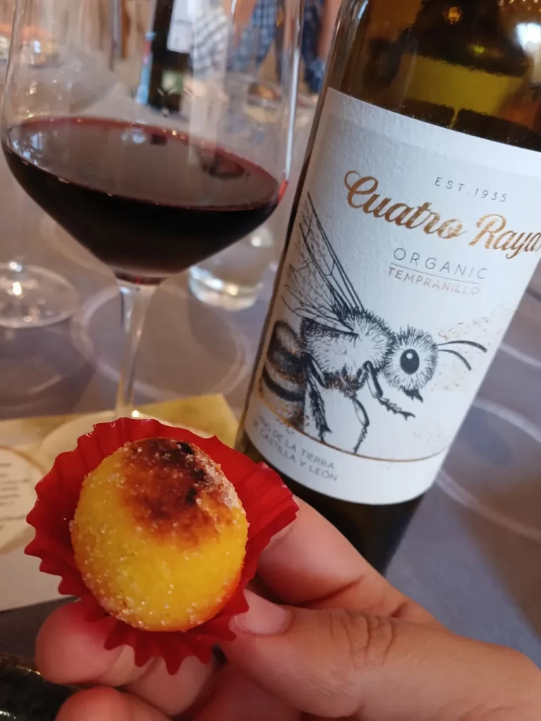 Como segunda variedad, se ofreció un tinto “Cuatro Rayas Orgánico Tempranillo”, vino joven comprometido con el medio ambiente y el proceso de vinificación, suave, con buen equilibrio entre acidez y alcohol que contrasta con las diversas notas del mole y del mismo “Chile en Nogada”.