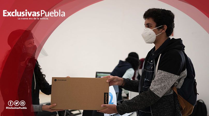 Se entregaron equipos de cómputo en préstamo a estudiantes de preparatoria y licenciatura en las sedes de Atlixco, Izúcar de Matamoros, y Chiautla de Tapia, entre otras