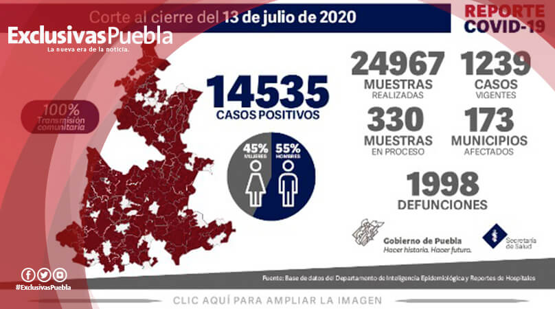 En conferencia de prensa matutina, con la presencia del gobernador de Puebla, Miguel Barbosa Huerta, el funcionario estatal explicó que hasta el momento se han procesado 24 mil 967 muestras, de las cuales 14 mil 535 han resultado positivas.
