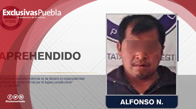 Alfonso N, de 37 años de edad, fue aprehendido por Agentes Estatales de Investigación de la Fiscalía General del Estado de Puebla, acusado del delito de violación en agravio de sus hijas de 9 y 6 años de edad.