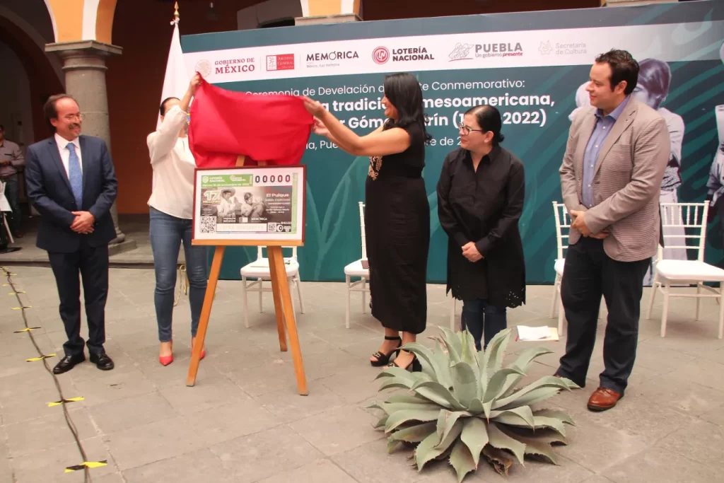 En colaboración con el Archivo General de la Nación y la Lotería Nacional para la Asistencia Pública, se llevó a cabo la develación del billete del Sorteo Superior número 2786, denominado “El pulque, bebida tradicional mesoamericana. Homenaje a Javier Gómez Marín (1966 – 2022)”, en el marco del primer aniversario luctuoso de dicho coleccionista, historiador, investigador, divulgador y promotor cultural poblano, dedicado a estudiar la memoria pulquera.
