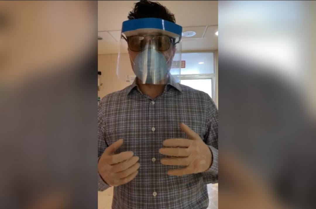 Mediante un video publicado en redes sociales, se le puede observar en el Hospital del Norte, donde aseguró que es el 4° hospital que ha visitado y en el que donará 90 caretas al personal médico.