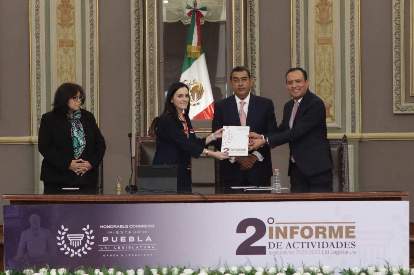 Por su parte, el gobernador Sergio Salomón Céspedes Peregrina reconoció la labor del Congreso del Estado que, a través de la pluralidad y el consenso, ha logrado resultados para el desarrollo y bienestar de la entidad, anteponiendo siempre los intereses de las y los poblanos, por encima de los intereses personales.