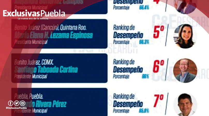En el listado previo que difundió la encuestadora se destaca al presidente municipal, Eduardo Rivera Pérez, en la posición número siete en el “Ranking de Desempeño” con un 65.8 por ciento.