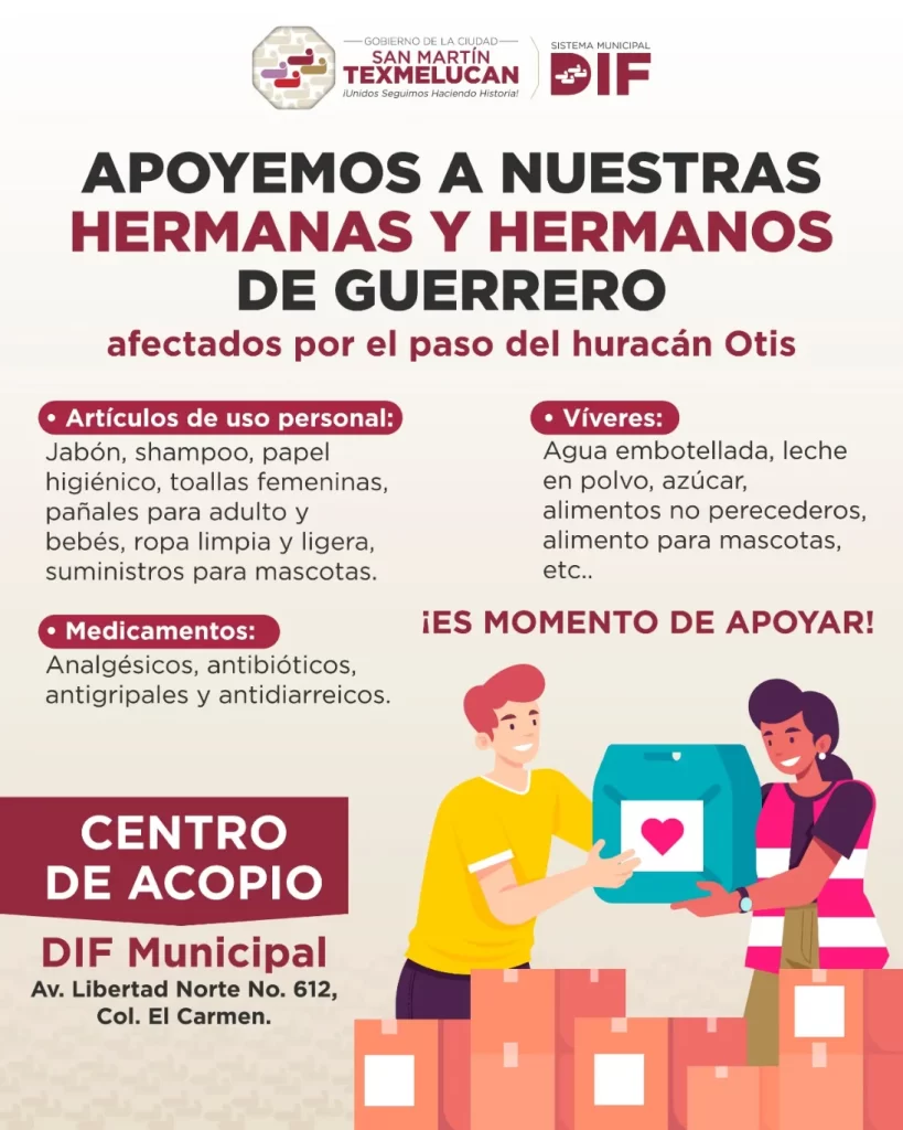 El Gobierno Municipal que preside Norma Layón invita a las y los texmeluquenses a sumarse y donar lo necesario para brindar toda la ayuda posible. Guerrero necesita de todos.