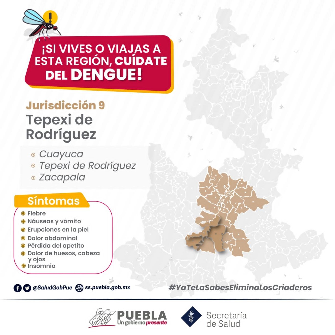 El gobierno presente de Sergio Salomón, a través de la Secretaría de Salud, informa que Puebla suma un acumulado de 2 mil 454 contagios por dengue, manteniéndose en cinco las defunciones por esta causa.
