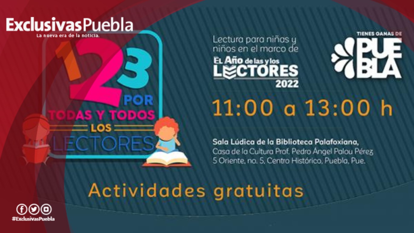 Como parte de la iniciativa “1, 2, 3 por todas y todos los lectores” y con el objetivo de promover la lectura y la escritura en las infancias de Puebla, la Secretaría de Cultura desarrollará durante julio un total de cinco talleres de lectura, arte, teatro y juego en la Sala Lúdica de la Biblioteca Palafoxiana (5 Oriente número 5, Centro Histórico), de 11:00 a 13:00 horas.