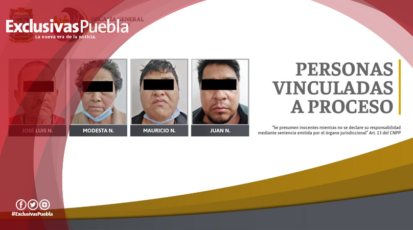 Durante las diligencias también se logró la detención de Juan N. de 36 años de edad, José Luis N. alias “El Tío” de 65 años, Modesta N. alias “La Tía” de 50 años y su nieto Mauricio N. de 35 años. Ante los datos de prueba presentados, la Fiscalía de Puebla obtuvo del Juez de Control la vinculación a proceso de las cuatro personas.