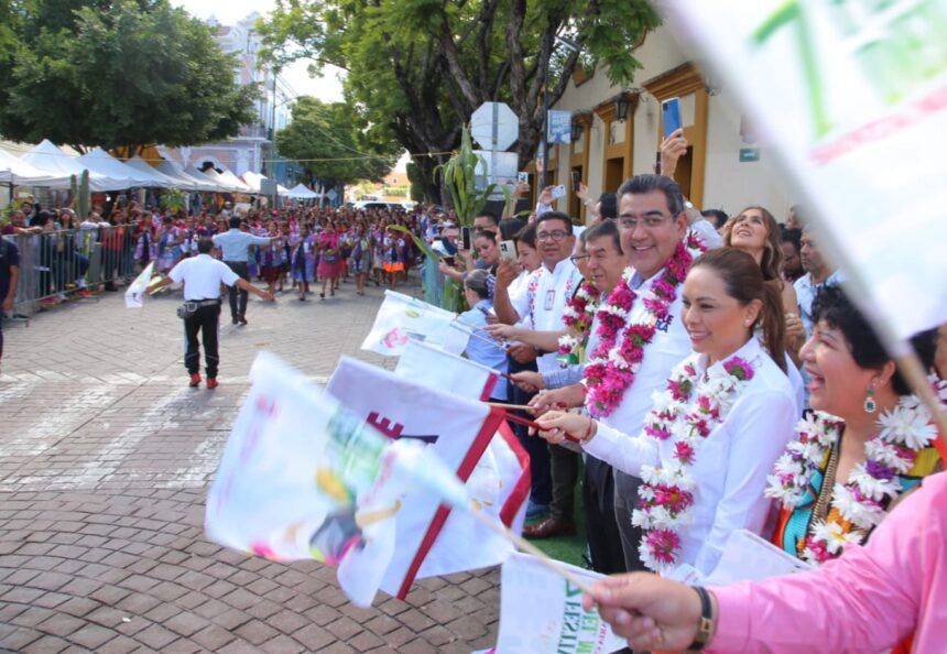 Niñas y mujeres originarias de Santa María Coapan portaron su vestimenta tradicional con orgullo para poner en alto su actividad comercial