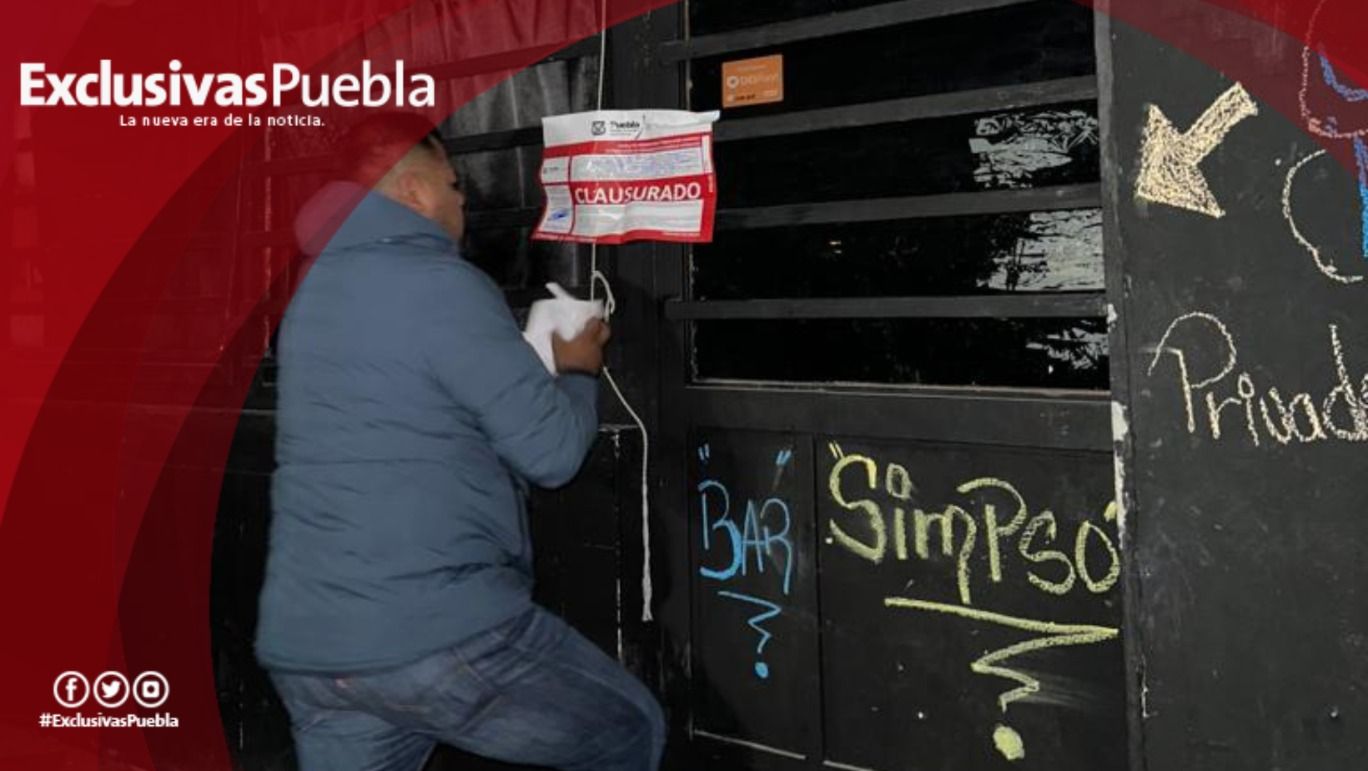 Los establecimientos clausurados de giros bares y centros nocturnos fueron “Cabaret Touch Me” y “Bar Simpson” ubicados en San Baltazar Campeche; “Discotheque Insomnia” y Bar “Beat” ambos ubicados en la zona de Zavaleta; así como Bar “El Puma”, Boulevard Norte Villas San Alejandro; Restaurante “Bar Pekaoo”, Camino Real a San Jerónimo; Salón Social “Las Castañas” en la 9 Sur 317, Reforma Sur; “Compadres” (el chino), Calle Montealban 5002 Lomas de San Miguel; y “Pozoleria Manu”, Calle Valle Nacional 6810 Colonia Del Valle.