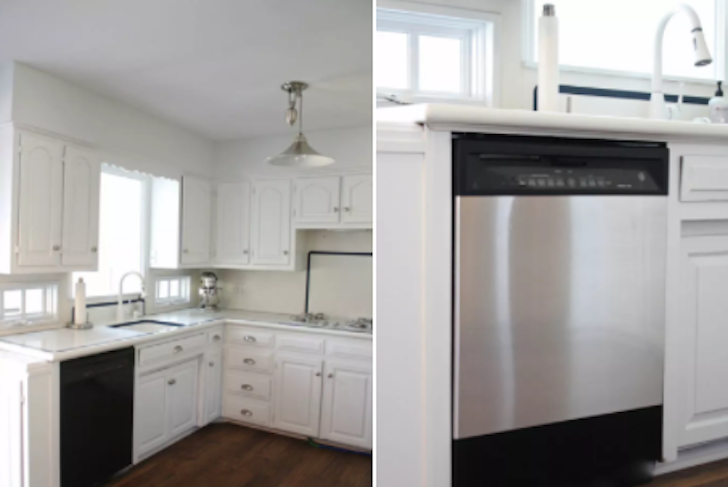 7. Haz que tus electrodomésticos se vean como acero inoxidable con papel de tapiz plateado.