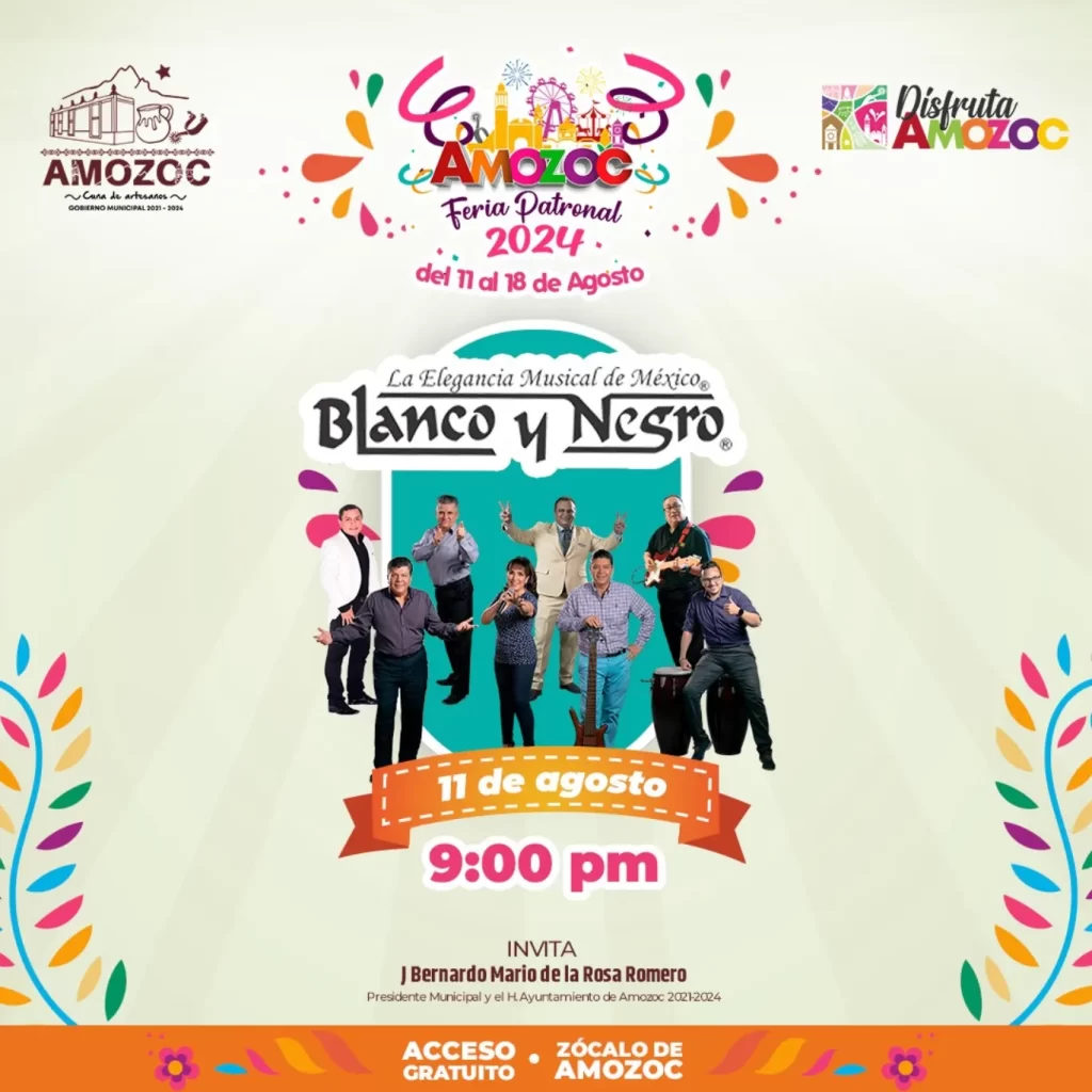 Domingo 11 de agosto, disfruta de la presentación de Moenia con todos sus éxitos, también canta y baila con el sabor de Blanco y Negro, la elegancia musical de México.