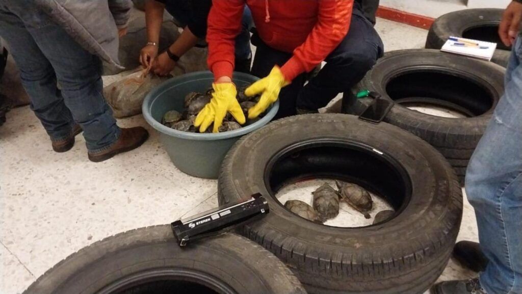 GN rescató 267 tortugas exóticas, las cuales fueron puestas a disposición de la Procuraduría Federal de Protección al Ambiente (Profepa)