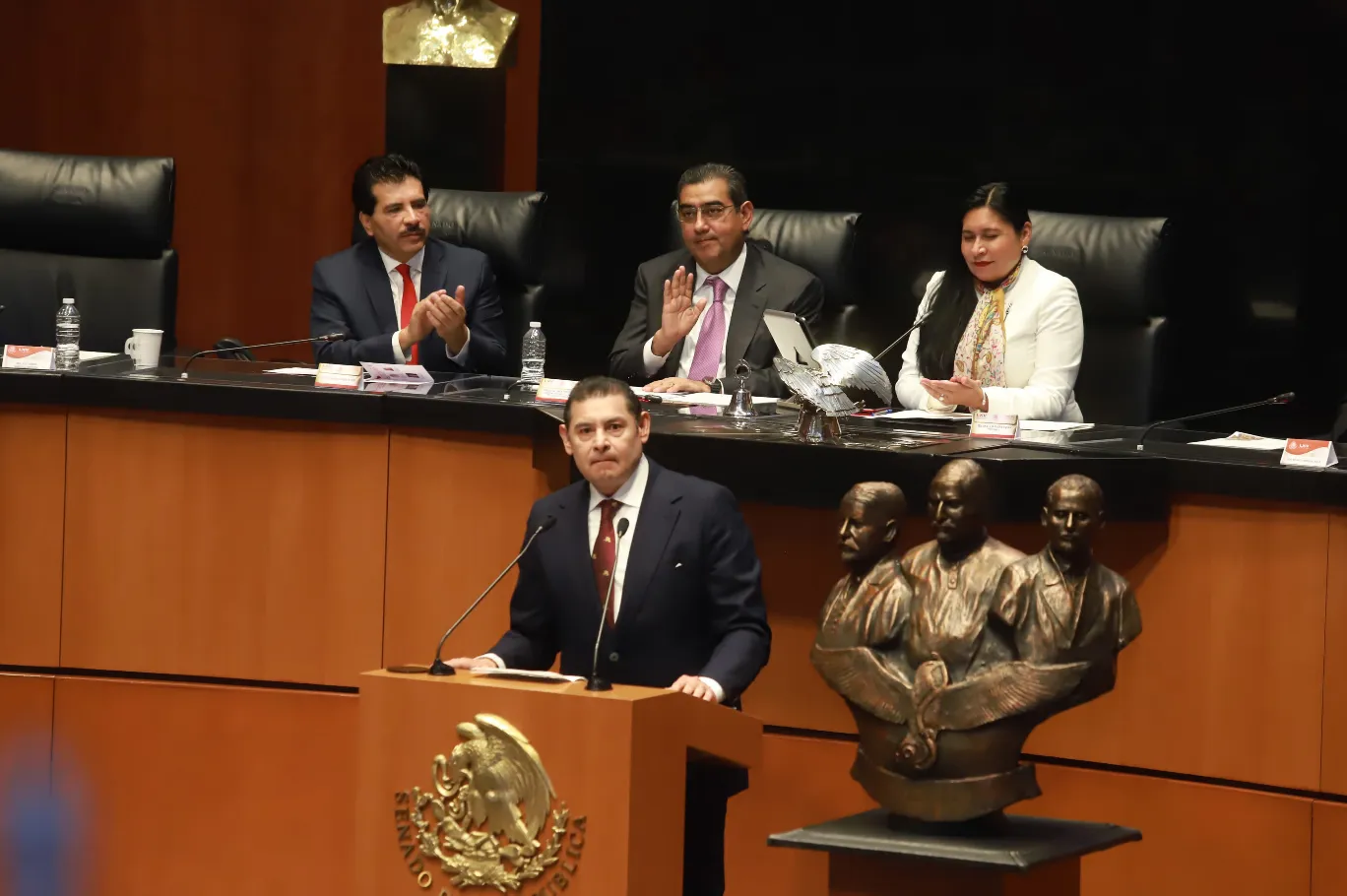 En su intervención, el gobernador Sergio Salomón destacó la importancia de este reconocimiento a los personajes de espíritu indomable, “que representan un tributo al compromiso y la lealtad de tres poblanos distinguidos mucho agradezco la iniciativa presentada por el senador Alejandro Armenta para realizar este acto solemne y para poner en alto el nombre de tres personajes que contribuyeron a cambiar el rumbo de nuestra historia”.