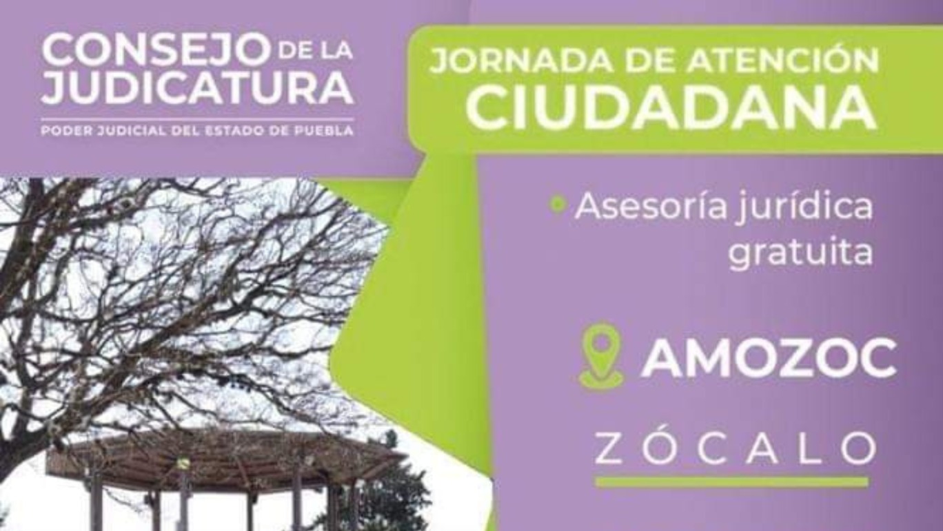 El gobierno municipal de Amozoc informó que este martes 13 de junio en el zócalo municipal, se llevará a cabo la Jornada de Atención Ciudadana del Consejo de la Judicatura del Poder Judicial del Estado de Puebla en el zócalo municipal de Amozoc en un horario de 10:00 a 13:00 horas, en la que se impartirán varios servicios sin algún costo.