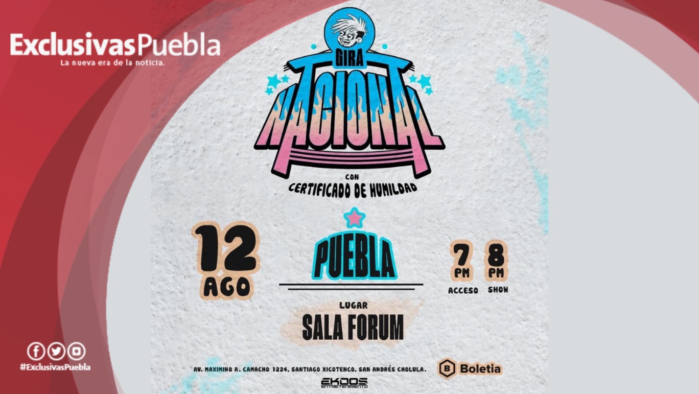 La gira nacional con “Certificado de humildad” es el nombre con el que presenta este tour que llegará a distintas ciudades de la república, show que precede el éxito que inicio en pequeños bares y foros de municipios del Estado de México.