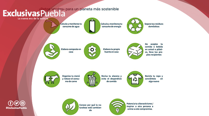 La iniciativa arranca este martes 8 de febrero y entre los eco retos destacan el cálculo de la huella ambiental, separación de residuos domésticos, elaboración de composta, creación de tu propio huerto en casa, organización de menús para reducir el consumo de carne, y cómo usar los propios recipientes para evitar el empleo de plástico o unicel, entre otras acciones vinculadas al cuidado del medio ambiente.