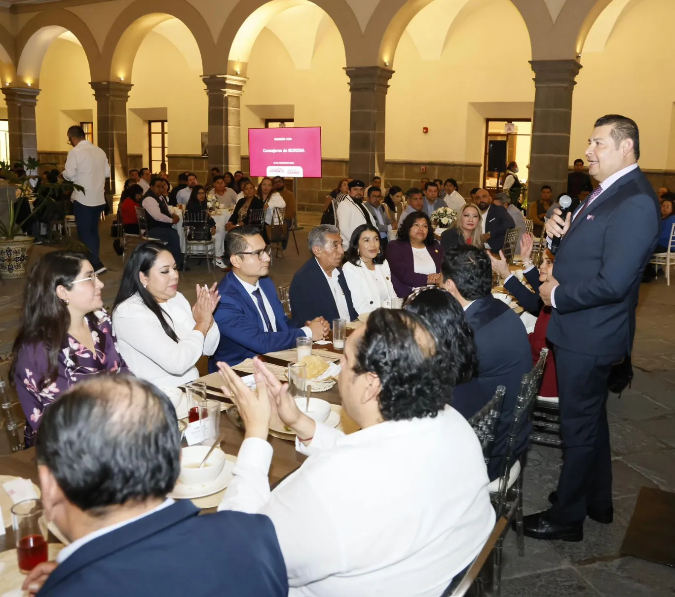 Agradeció la presencia de 142 consejeros, de la presidenta estatal de Morena Olga Lucía Romero Garci-Crespo, así como de Andrés Villegas Mendoza, presidente del Consejo Estatal de Morena en Puebla, y Agustín Guerrero Castillo, secretario general del CEE, entre otros.
