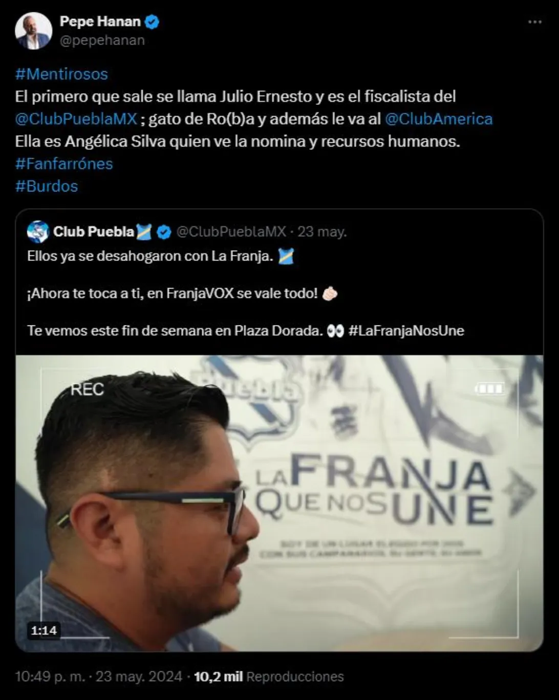 La semana pasada en el colmo de la desfachatez y el cinismo convocaron a los poblanos a realizar un ejercicio llamado VOX donde supuestamente el aficionado poblano podría expresarse durante un minuto aproximadamente y decirle al equipo y directiva sus verdades.