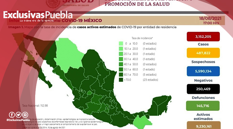 Las autoridades de Salud advierten que hay 145, 716 casos activos estimados, es decir, que han presentado síntomas durante los últimos 14 días lo que representa 4.3% del total de la pandemia activa en el país. Mientras, las personas recuperadas suman 2 millones 486,658.