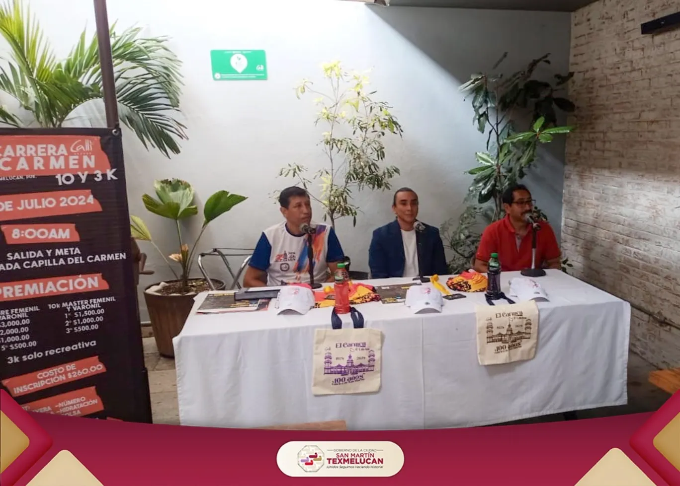 En rueda de prensa, el Gobierno Municipal de San Martín Texmelucan a través de la dirección de Fomento al Deporte, en colaboración con el Presidente del Comité y Organizador de la carrera, Tomas Bustamante y el Secretario del Sindicato de la Fábrica San Martín, Gustavo Morales Tlayeca, anuncian la 8va Edición de la Carrera Callí El Carmen 2024, que se llevará a cabo el 14 de julio a las 08:00 a.m., en conmemoración de los 100 años de la Fábrica San Martín, mejor conocida como Fábrica El Carmen.