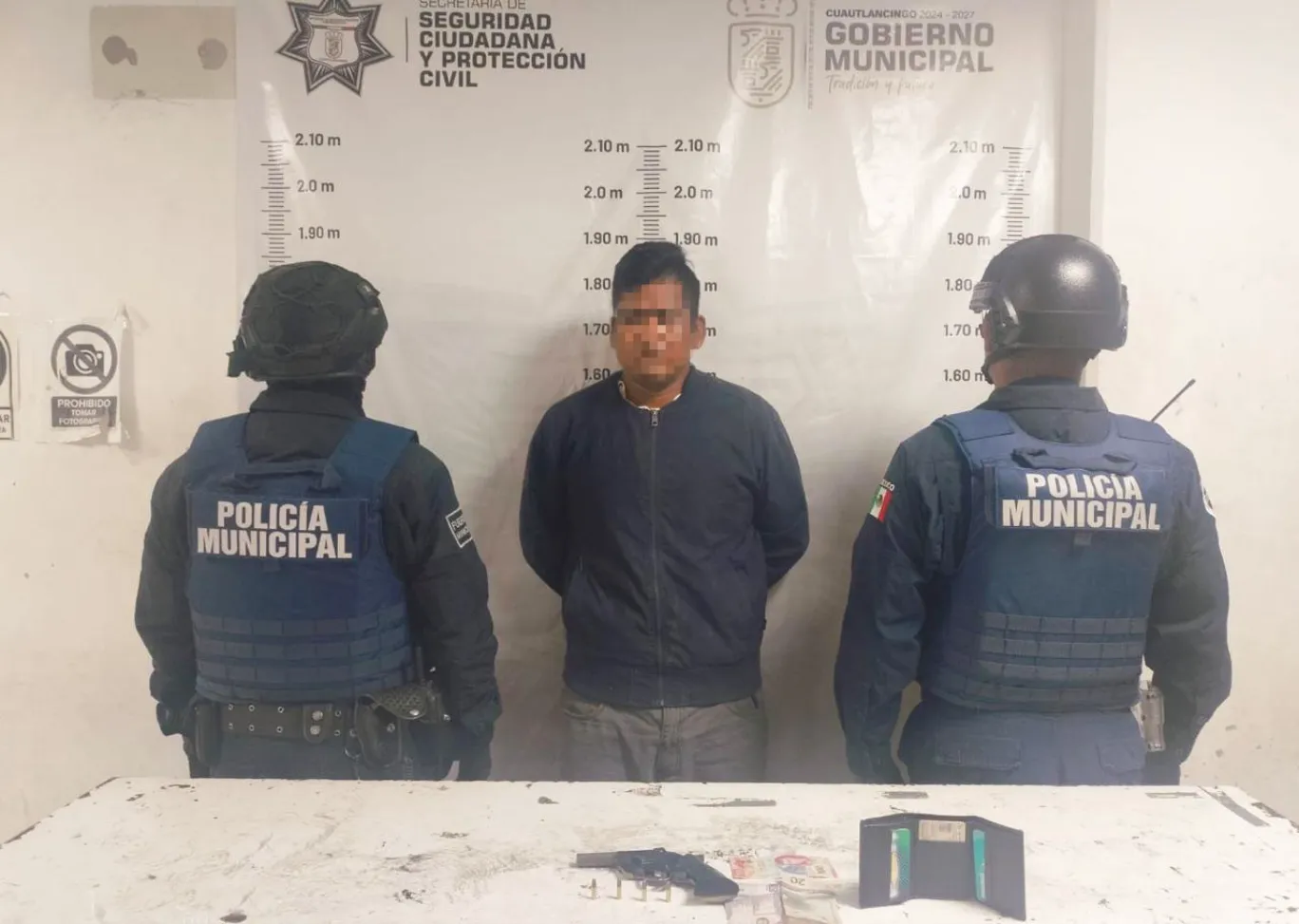Al llegar al lugar los oficiales se entrevistaron con un ciudadano, quien manifestó que un sujeto, identificado como Jorge “N”, lo amagó con una pistola tipo revólver calibre .22 para despojarlo de su cartera, que contenía dinero en efectivo e identificación oficial.
