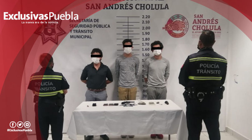 Al entrevistarse los oficiales con los sujetos estos mostraban signos de que se encontraban bajo los influjos del alcohol, por lo que se procedió a realizar la inspección en el vehículo, encontrando una pistola réplica tipo revólver de aire, así como hierba con características similares a la de la marihuana. Por lo anterior, fueron remitidos al Complejo de Seguridad Pública de San Andrés Cholula para ser puestos a disposición de la Fiscalía General del Estado para que ejecute las acciones de investigación correspondientes.