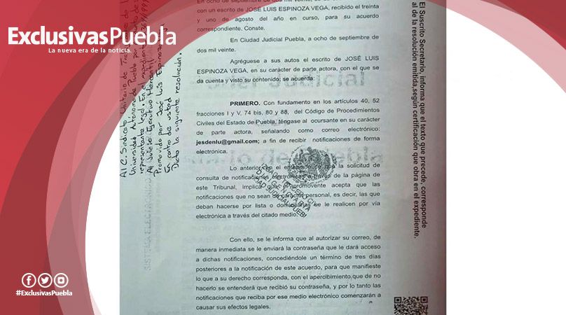 Lo anterior fue ordenado por el juez tercero de Materia Civil de la Ciudad de Puebla, incluso, el medio La Jornada de Oriente exhibió una carta que el secretario general del Suntuap, Guillermo López Mayo, remitió al gobernador, Miguel Barbosa Huerta, solicitando su intervención para evitar la acción.