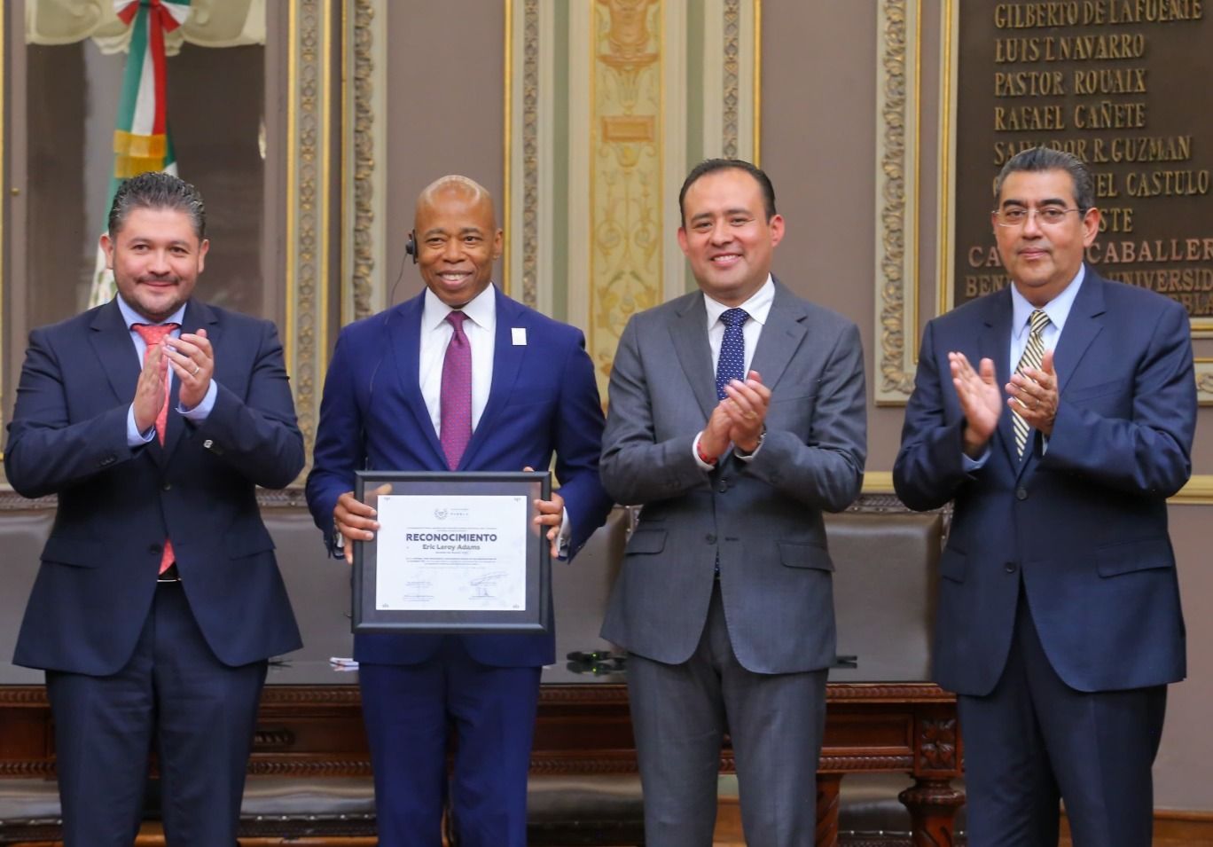 El mandatario estatal explicó que el reconocimiento otorgado al alcalde neoyorquino es una forma de agradecer sus acciones que ha tenido impacto profundo en la vida de las y los migrantes poblanos; esto mientras estaba acompañado de los presidentes del Poder Legislativo local y del Tribunal Superior de Justicia, Eduardo Castillo López y Belinda Aguilar Díaz, así como de Jorge Islas López, cónsul general de México en Nueva York.