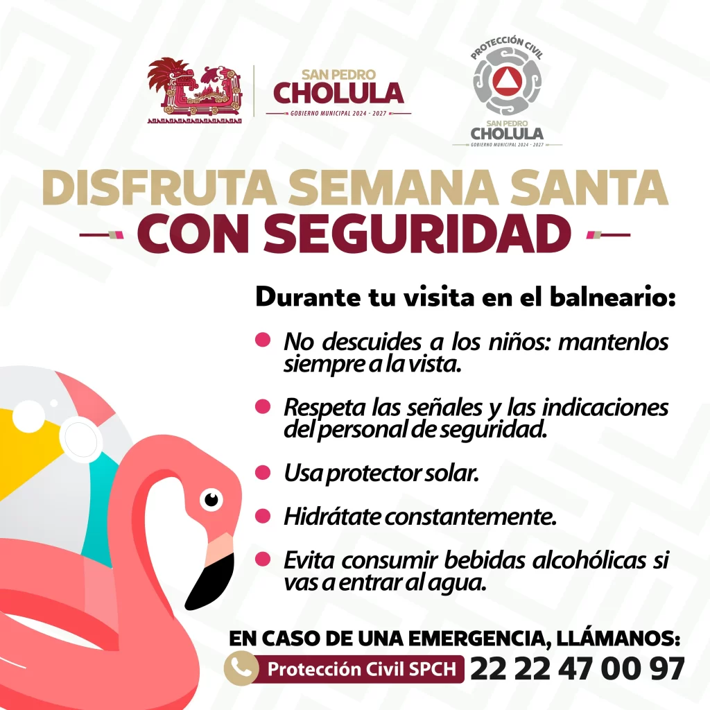 La Dirección de Protección Civil de San Pedro Cholula (PCCholula) llevó a cabo visitas de supervisión a balnearios y centros recreativos del municipio, con el objetivo de verificar que cuenten con los protocolos de seguridad necesarios para garantizar una estancia segura durante el periodo vacacional de Semana Santa.