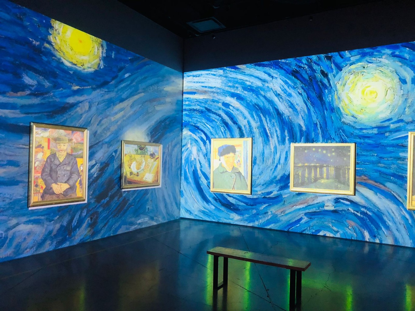 El recorrido está conformado por varios momentos, como una réplica del cuarto de Arlés, Francia, dioramas gigantes, cuadros vivos, visores de realidad virtual y sus más famosos autorretratos, también, un cuadro 3D de “Los Girasoles” una línea del tiempo sobre su trayectoria artística y la sala inmersiva 360 grados en pantallas de 5 metros de altura.