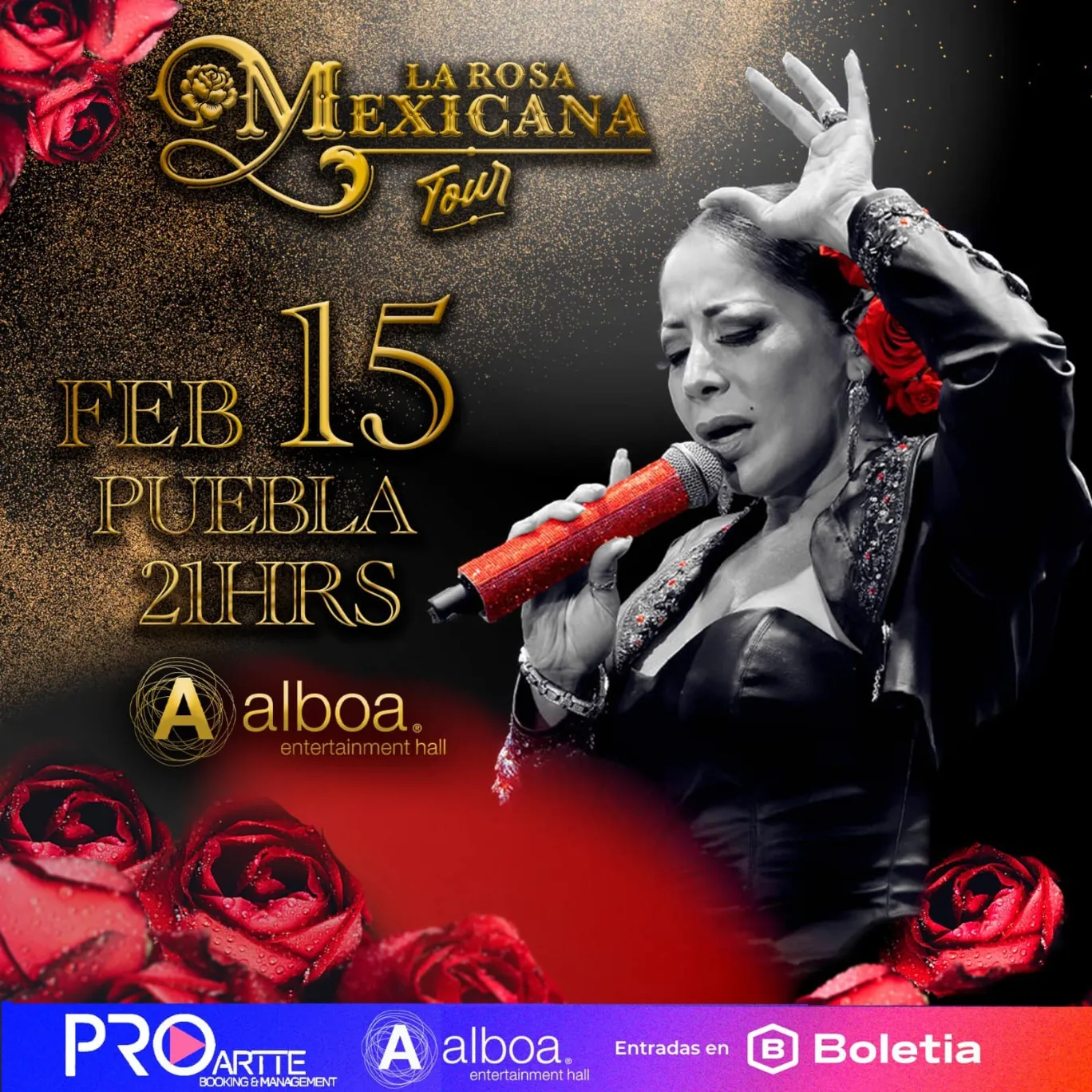 El sábado 15 de febrero a las 21:00 horas se presentará en Alboa en la ciudad de Puebla la cantante Rosy Arango con su espectáculo “La Rosa Mexicana Tour” en la que incluye todos sus éxitos y canciones de sus diferentes producciones discográficas, que la han consolidado como una de las mejores intérpretes de la historia del género regional mexicano.