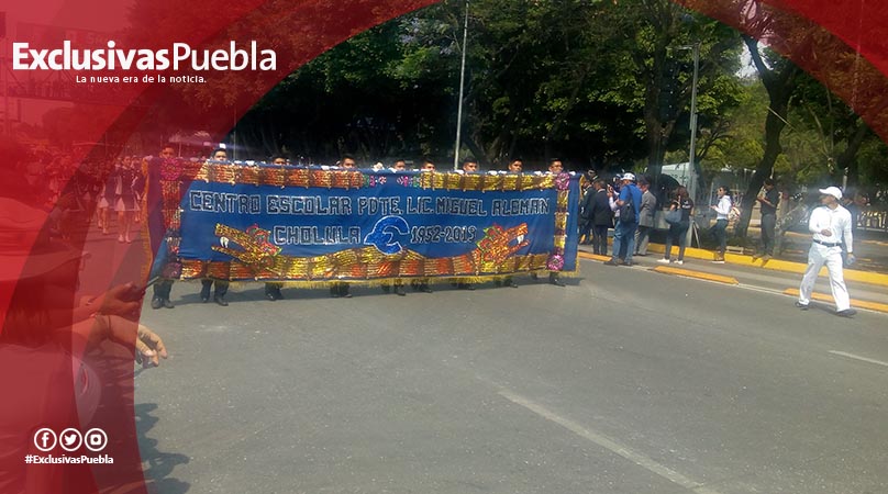 Participaron 10 mil escolares de 36 planteles educativos y cerca de 2 mil efectivos militares en esta parada cívico-militar que fue admirada por las autoridades federales y estatales, encabezadas por Olga Sánchez Cordero, secretaria de Gobernación federal y el gobernador de Puebla, Guillermo Pacheco Pulido. El carro alegórico hecho por maestros y alumnos del Centro Escolar Miguel Alemán (Celma) destaca la grandeza arquitectónica de los ex conventos franciscanos que ya figuran en la lista del Patrimonio Mundial de la Unesco.
