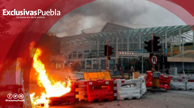 Cientos de manifestantes irrumpieron hoy en la Terminal 1 del Aeropuerto Internacional de Hong Kong causando destrozos en las instalaciones y caos entre los pasajeros, luego de que provocar la suspensión del servicio de trenes hacia la base aérea. A pesar de los intentos de las fuerzas de seguridad de frenar su avance al aeropuerto, un grupo de manifestantes enmascarados logró ingresar esta tarde a la planta baja de la Terminal 1, destrozando una puerta de vidrio, que fue cerrada por las autoridades del aeropuerto para bloquearlos. Otros manifestantes, vestidos de negro y ocultándose de las cámaras del circuito cerrado de televisión del aeropuerto bajo paraguas, construyeron barricadas en la estación de autobuses del aeropuerto, con postes de hierro, palos y otros objetos. En un intento de detener su ingreso, personal del aeropuerto estableció barreras en ciertas entradas de la terminal aérea y llamó a la policía antidisturbios, luego de que manifestantes violentos enfrentaron a uniformados en estaciones del servicio de trenes Airport Express.