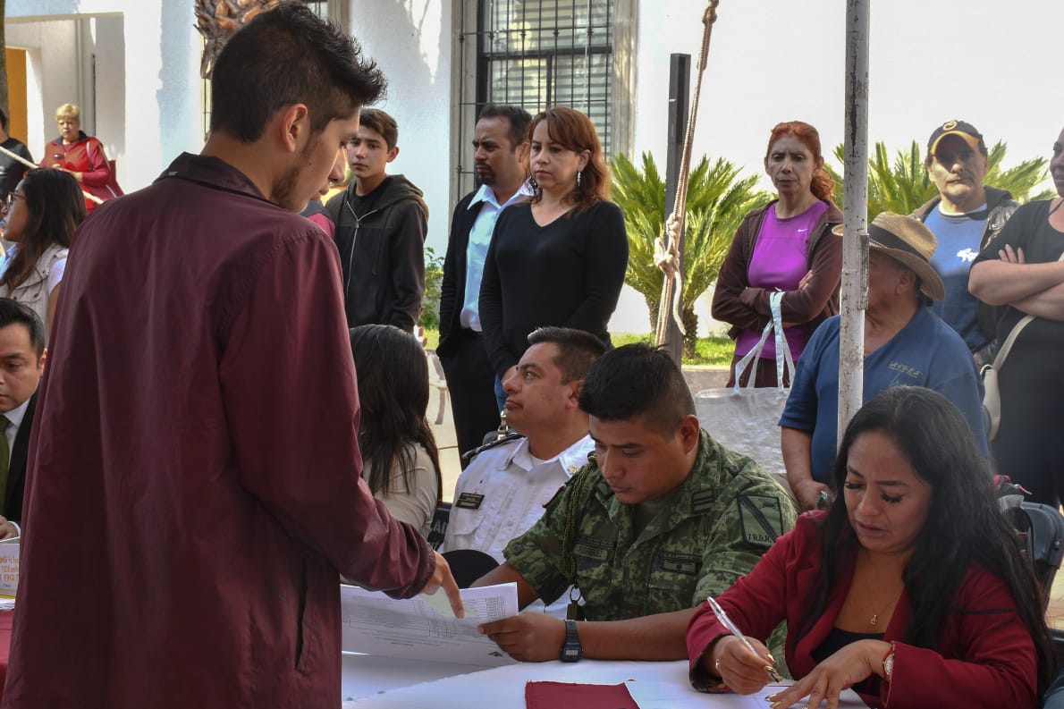 Este domingo, en la explanada del palacio municipal se llevó a cabo el Sorteo del Servicio Militar Nacional (SMN), para los 679 jóvenes de la clase 2001 y remisos del Municipio, donde se eligió a quienes habrán de presentarse en el Centro de Adiestramiento de la XXV Zona Militar para cumplir con su deber a la nación.Quienes resultaron sorteados con bola negra quedarán en situación de disponibilidad, mientras que los 150 enlistados con bola blanca serán reclutados para realizar su servicio y preparación en el Centro de Adiestramiento Militar en próximos meses.Posterior al acto cívico, la Presidenta Municipal de Cuautlancingo, Lupita Daniel Hernández, señaló que el servicio militar es una obligación de los mexicanos, en el que desarrollan valores y virtudes que les permitirán ser mejores ciudadanos.El Subteniente de Transmisión de la XXV Zona Militar, Floriberto López Rosas, constató que el sorteo fuera realizado de manera transparente y legal y detalló a los jóvenes reunidos las reglas para realizar este sorteo, donde se eligieron 150 bolas blancas y 529 bolas negras, por lo que llamó a los jóvenes a enaltecer, honrar y defender a nuestra Nación y Lábaro Patrio.