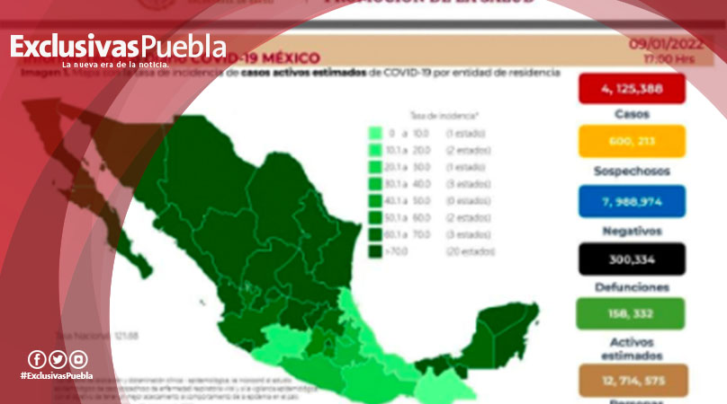 La pandemia por Covid-19 en México ha dejado un saldo de 300,334 defunciones y 4 millones 125,388 contagios, de acuerdo con el reporte diario de la Secretaría de Salud federal.