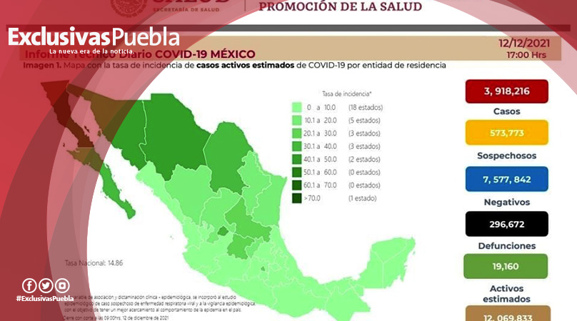 Además, hay 573,773 casos sospechosos de Covid; 7 millones 577,842 negativos y 19,160 casos activos estimados.