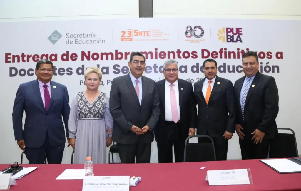 El gobernador Sergio Salomón Céspedes Peregrina presidió el evento en el que fueron entregados mil 484 nombramientos definitivos para las y los docentes poblanos; con ello, se les brinda certeza laboral para que puedan desarrollarse profesionalmente en su ámbito.