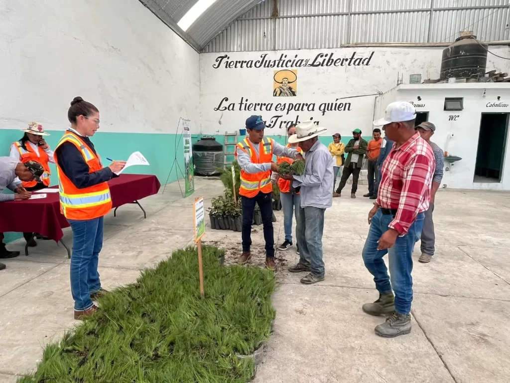 Los ejidatarios tienen el compromiso de plantarlos en sus respectivas parcelas como estrategia para atender de forma eficiente toda la zona. En total, serán entregados 5 mil 500 plantas de Pinus montezumae, Pinus leiophylla y Quercus rugosa, mismas que fueron donadas por la Secretaría de Medio Ambiente y Desarrollo Territorial.
