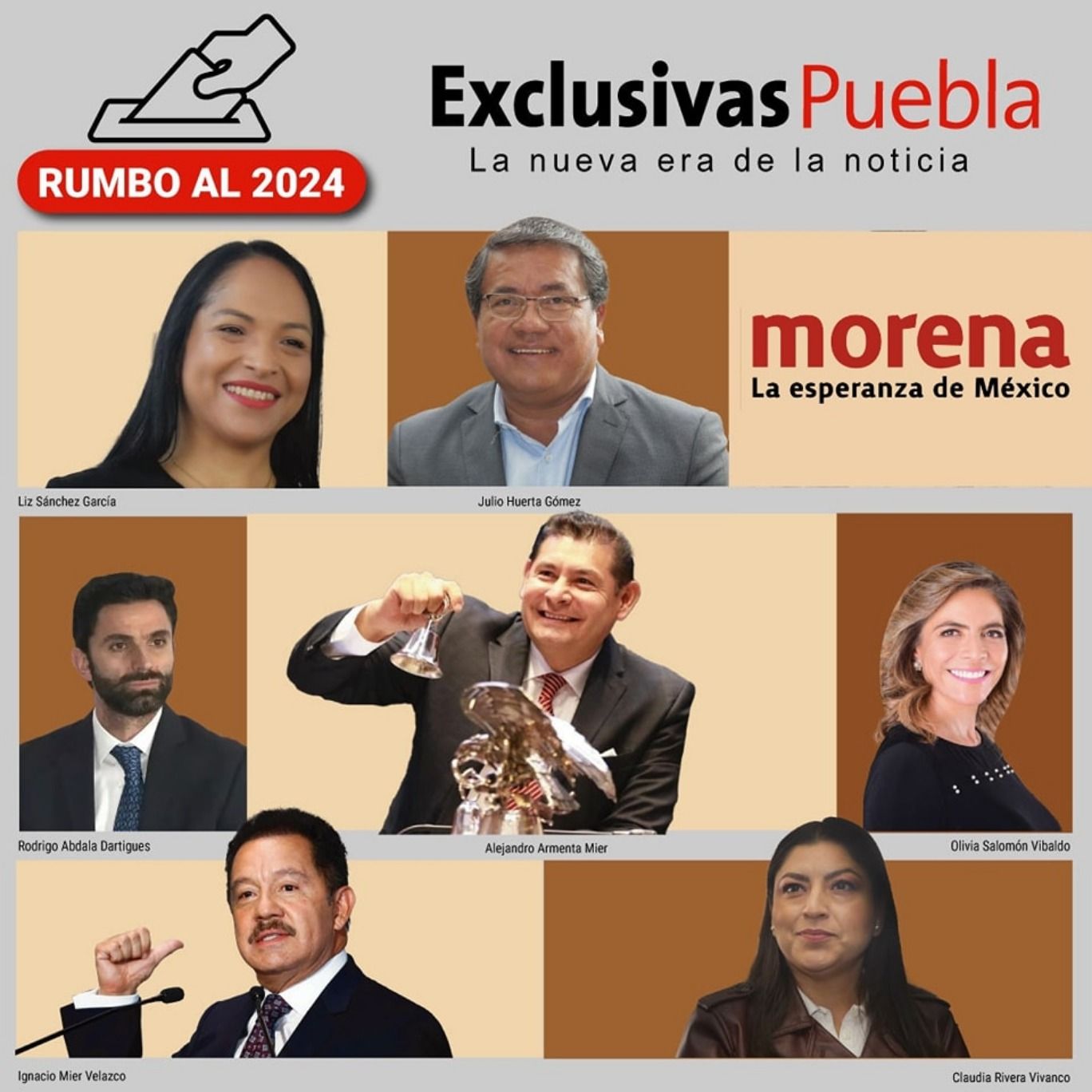 Los aspirantes que irán a la encuesta de Morena de Puebla: Rodrigo Abdala, Alejandro Armenta, Julio Huerta, Olivia Salomón, Liz Sánchez, Nacho Mier y Claudia Rivera