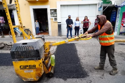 Tonantzin Fernández refuerza acciones de bacheo en la Cabecera Municipal