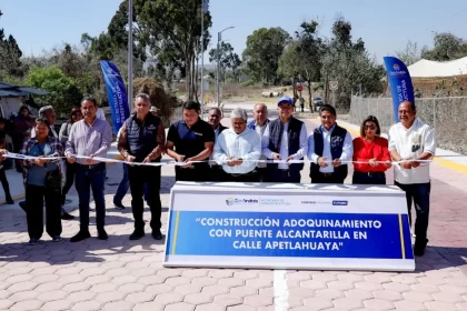 Inaugura Mundo Tlatehui adoquinamiento con puente alcantarilla en la calle Apetlahuaya en Cacalotepec