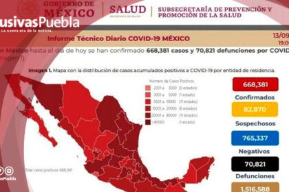 Acumula Puebla 30 mil 664 casos positivos de Covid-19