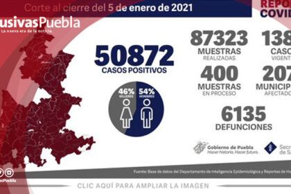 451 casos y 19 decesos por Covid en Puebla durante el fin de semana