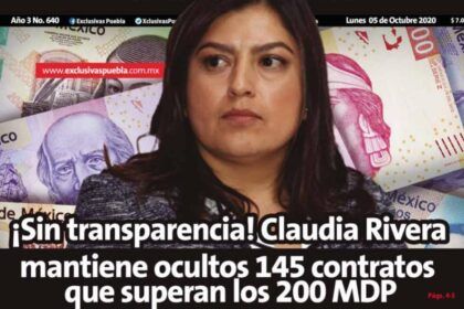 ¡Sin transparencia! Claudia Rivera mantiene ocultos 145 contratos que superan los 200 MDP