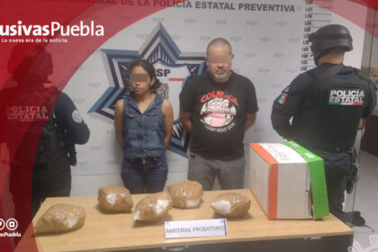 En posesión de aparente cristal, Policía Estatal captura a dos personas en Amozoc
