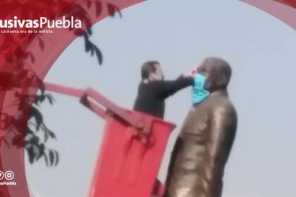 Arriaga coloca cubrebocas al monumento al doctor Alfredo Toxqui